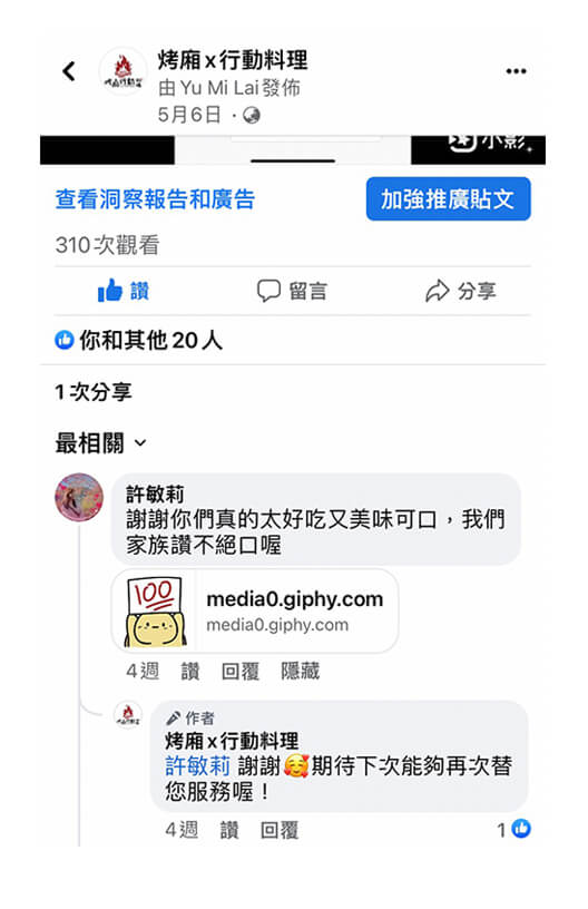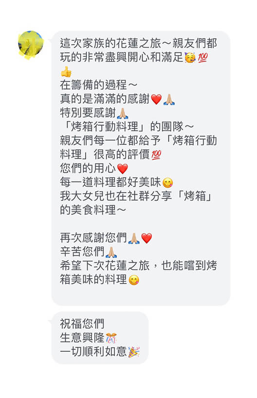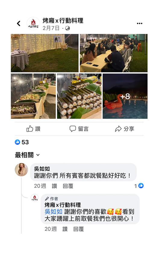 好評推薦 / 貼心的服務與新鮮的美味料理,烤廂×行動料理獲得許多客戶的好評與推薦