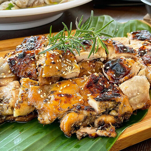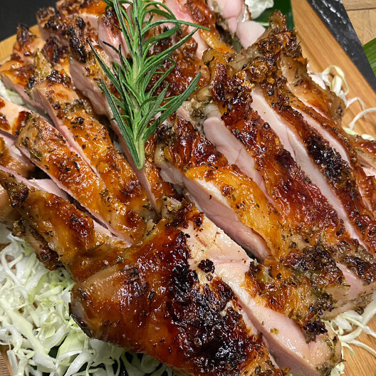 經過多種義式香料的醃漬,再加上烤廂碳烤使表皮金黃焦脆,肉汁在口中讓肉質完全不乾柴,一口咬下感受到義式香料的香氣撲鼻久久不散。
