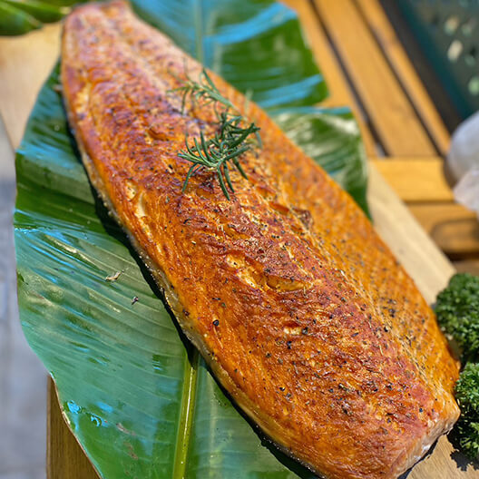 烤廂挑選由花蓮好山好水養殖台灣鯛,養殖場以山泉水來養殖,絕不帶有土味,用好的水質養出甜美細嫩的肉質。
